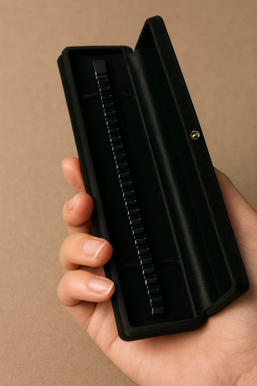 Elevate your style with our Black Bracelet. This elegant yet affordable fashion piece is crafted with precision and timeless appeal. Designed in Pakistan, its sleek black stones offer a bold, luxurious...