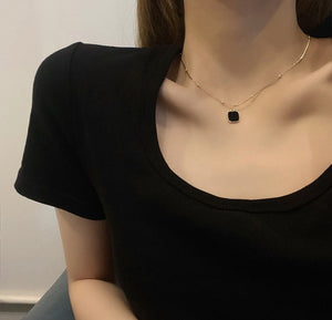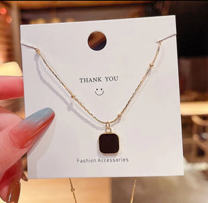 AM-1129 - Black Charm Minimal Necklace