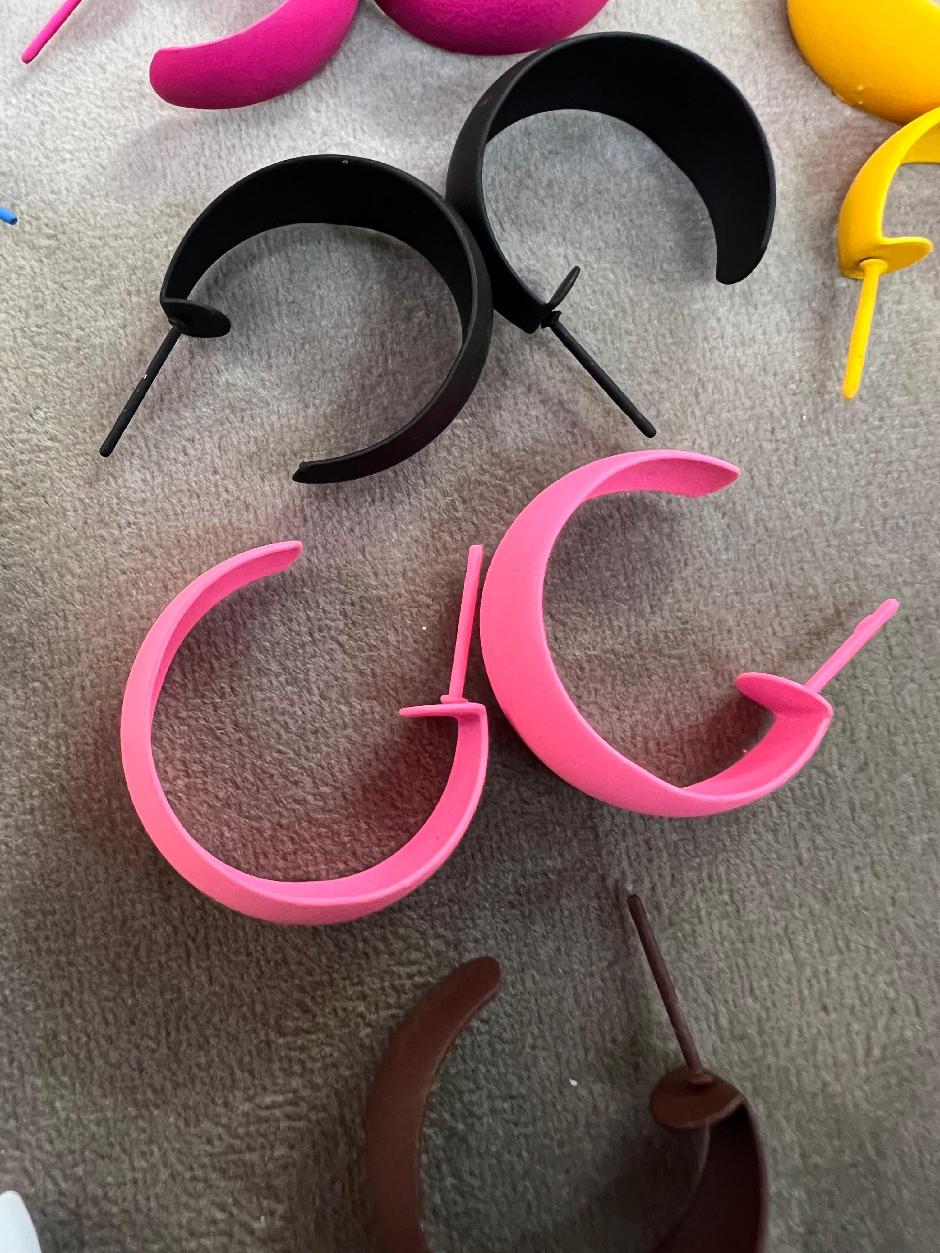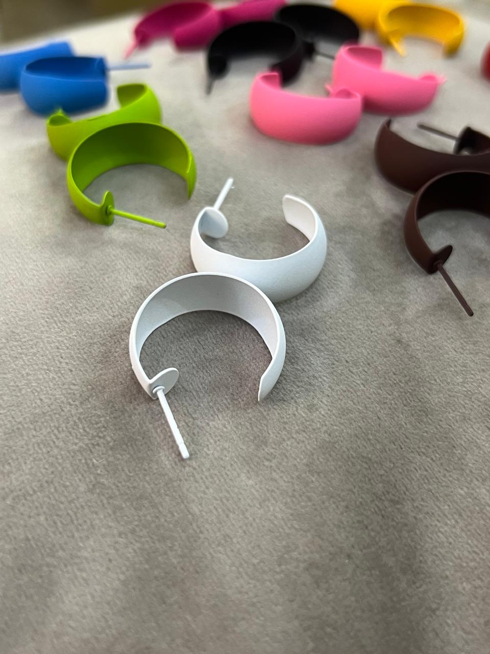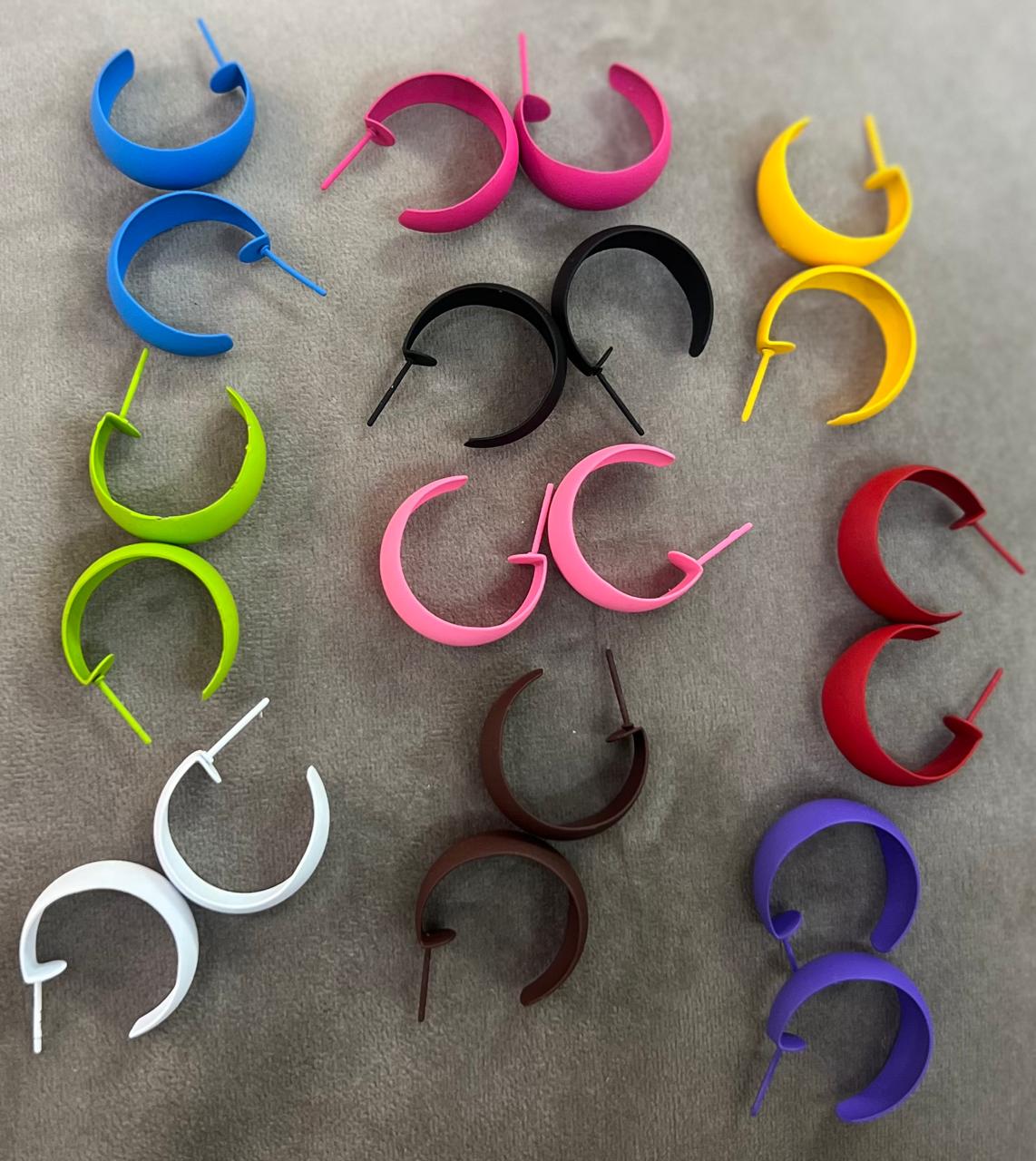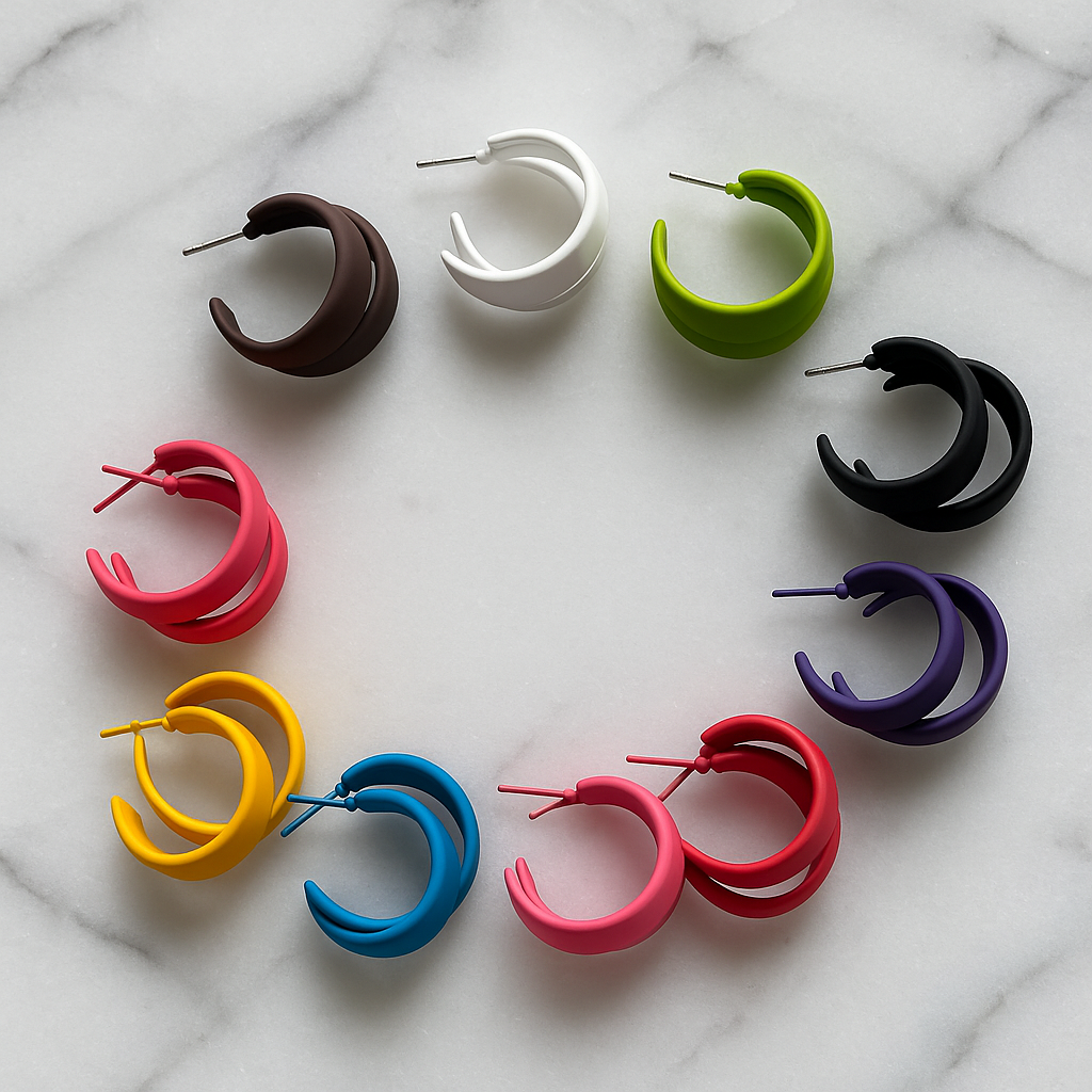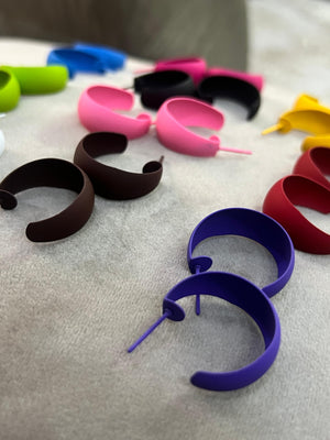 Turn everyday outfits into a statement with our bold and colorful hoop earrings. These matte-finish hoops are lightweight, trendy, and designed for comfort and versatility. Available in 9 eye-catching colors – Black, Blue, Pink, Light Pink, Mehroon, Brown, Purple, Green, and White – there's a perfect match for every mood and outfit.