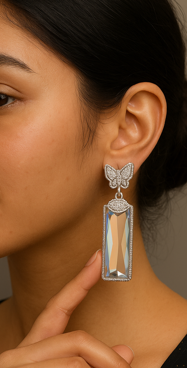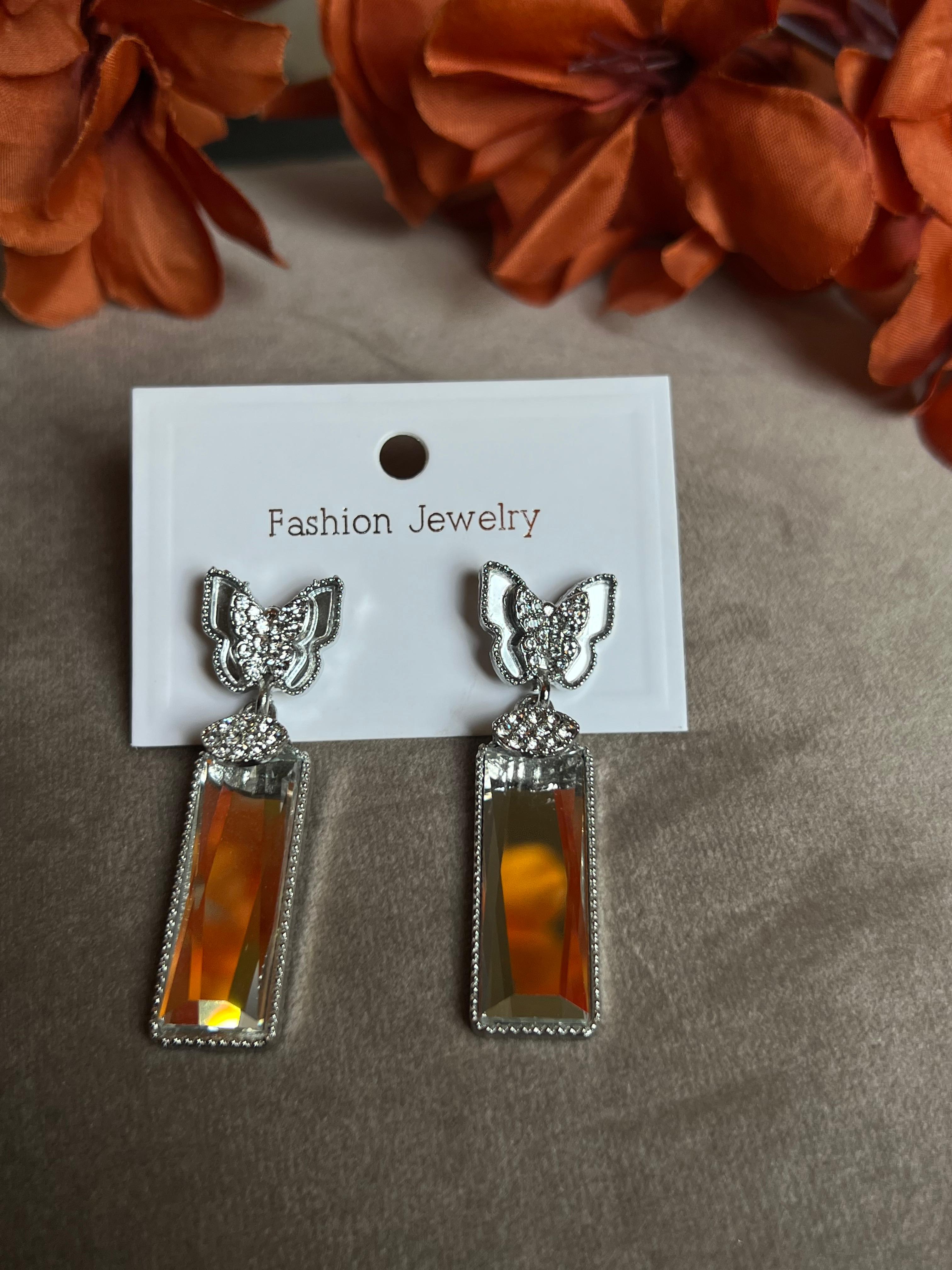 Elevate your style with Diamond Crystal butterfly Earrings. This fashion jewelry piece is both elegant and affordable, crafted with precision by Samora Pakistan. Perfect for any occasion, these artificial stone tops will elevate any outfit and serve as a timeless addition to your fashion accessories collection.