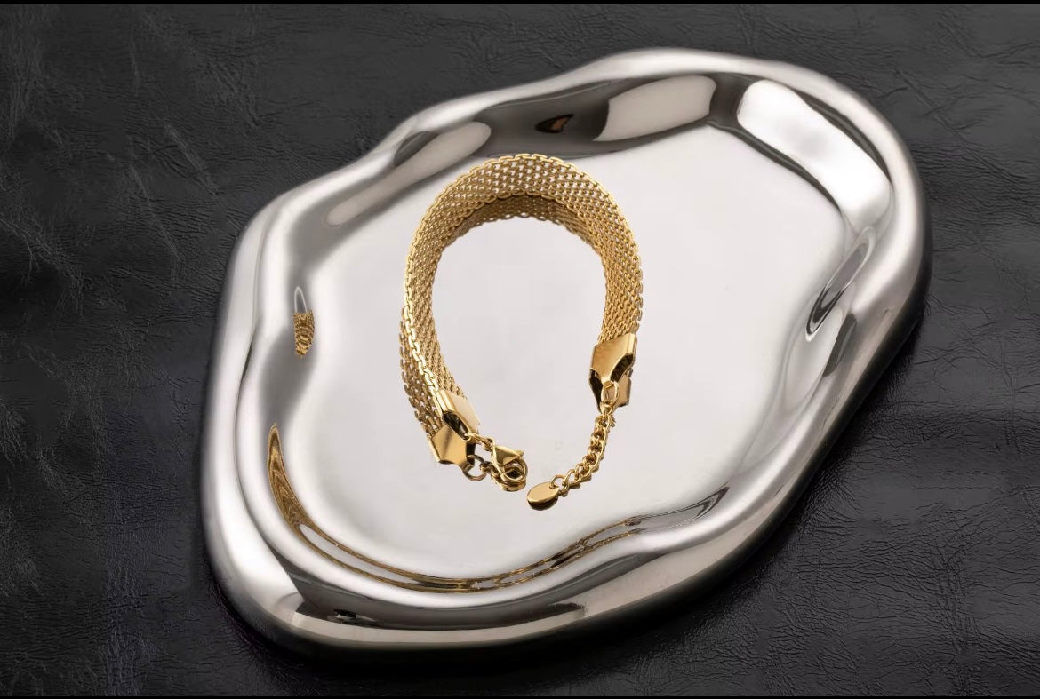 To maintain the quality and longevity of this piece, avoid direct contact with water, perfumes, and other chemicals. Store in a dry, cool place, ideally in an airtight box. With proper care, the shine and finish can last up to one year or longer.