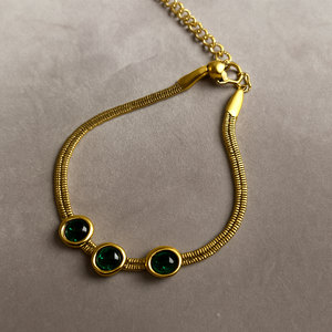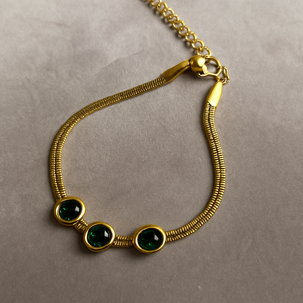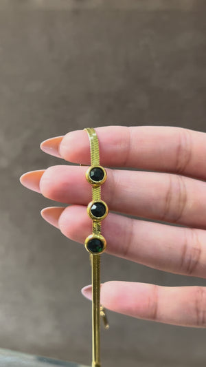 Elevate your style with our Mung Bean Snake Bracelet. This elegant yet affordable fashion piece is crafted with precision and timeless appeal. Designed in Pakistan, its sleek black stones offer a bold, luxurious finish. Whether worn solo or layered, it adds sophistication to every look.