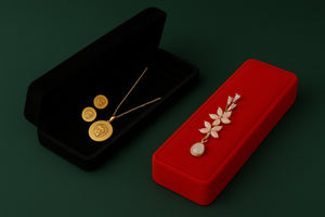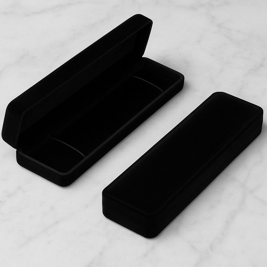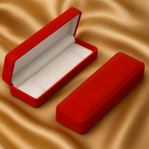 Add a touch of elegance to your necklaces with this red velvet box, featuring a plush white interior. Crafted to showcase your jewelry in the best light, it ensures both style and safety for your delicate pieces.