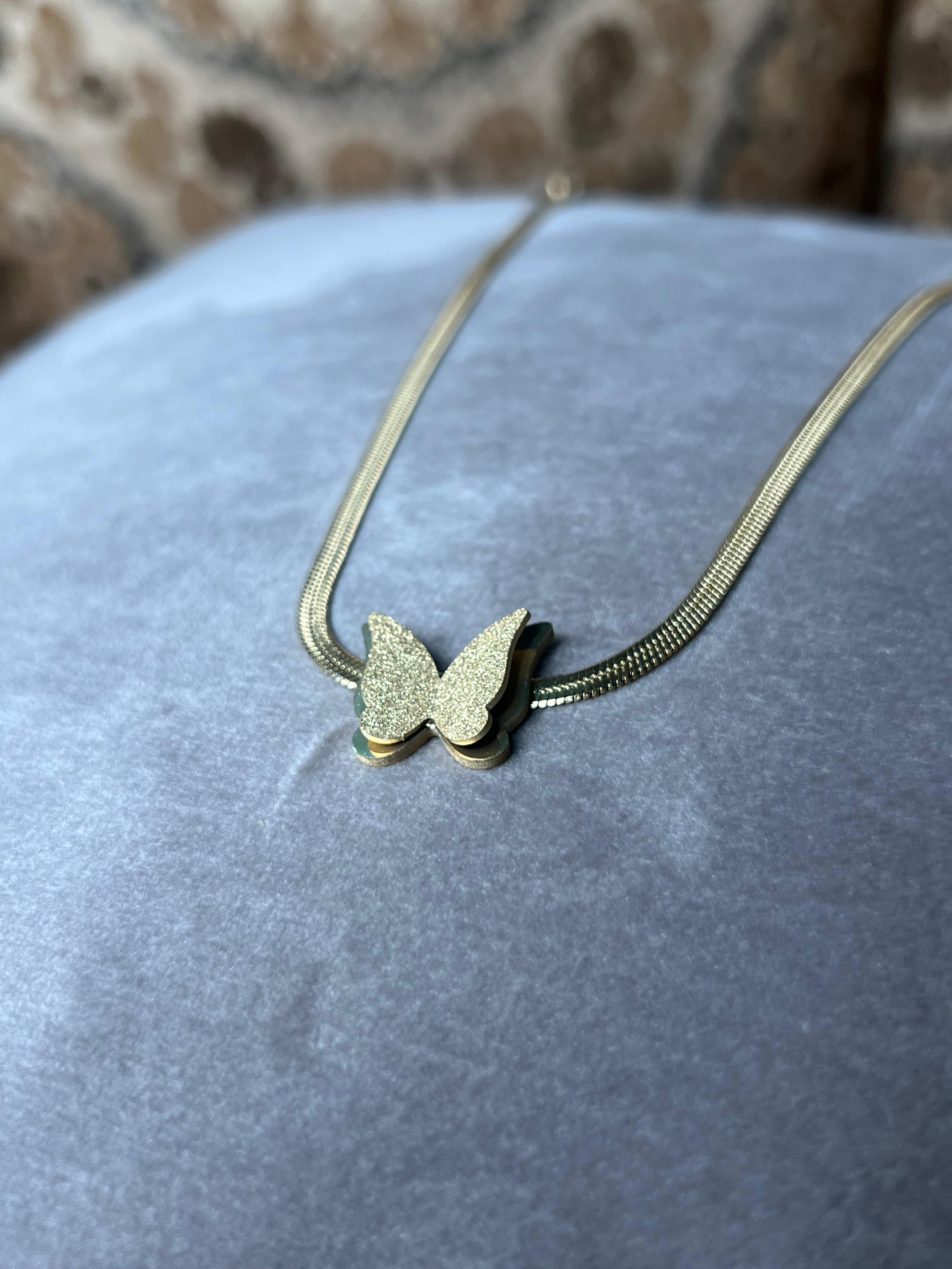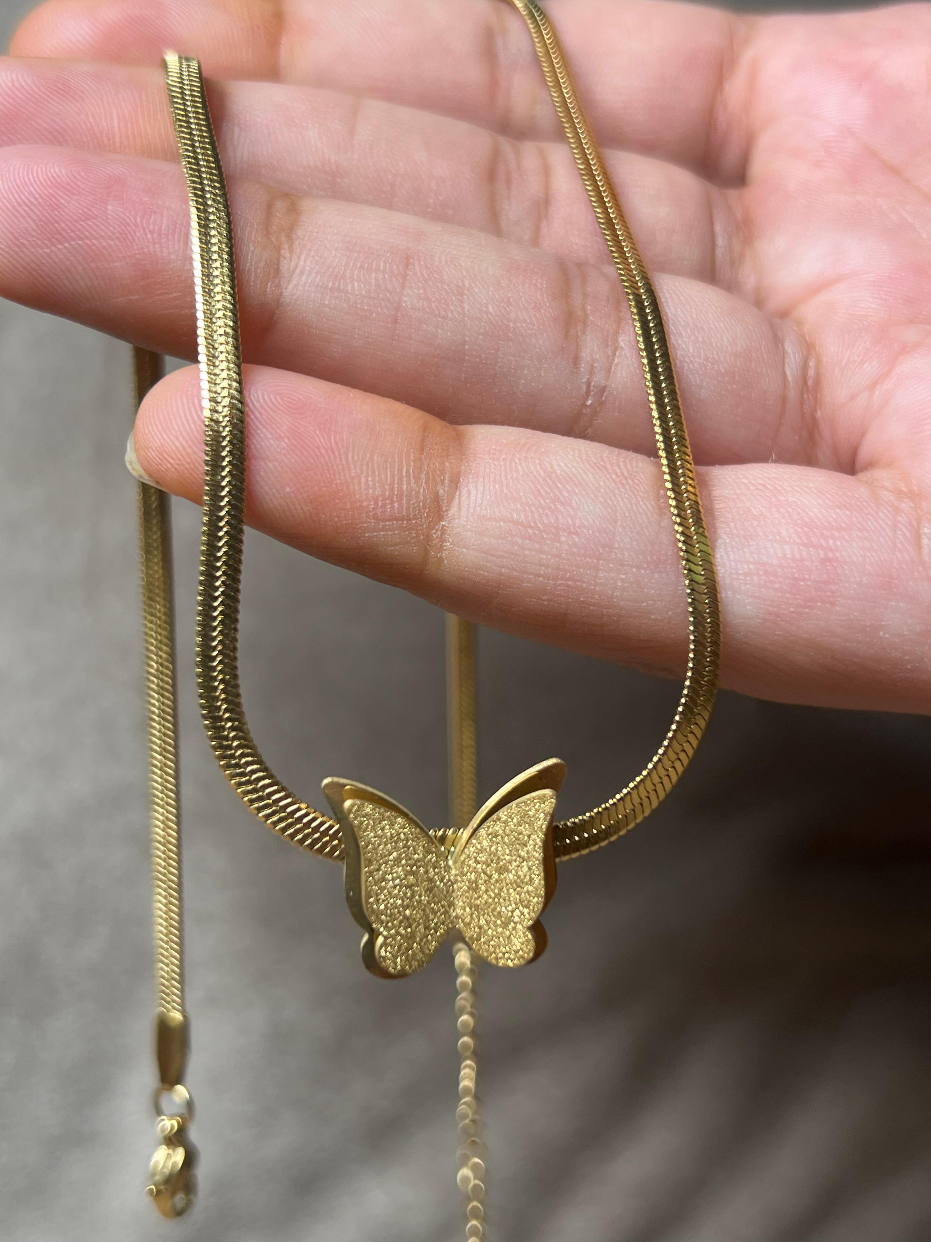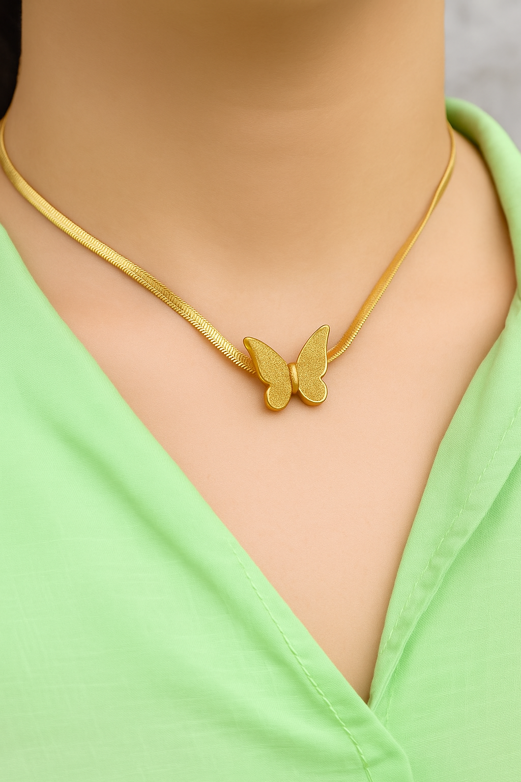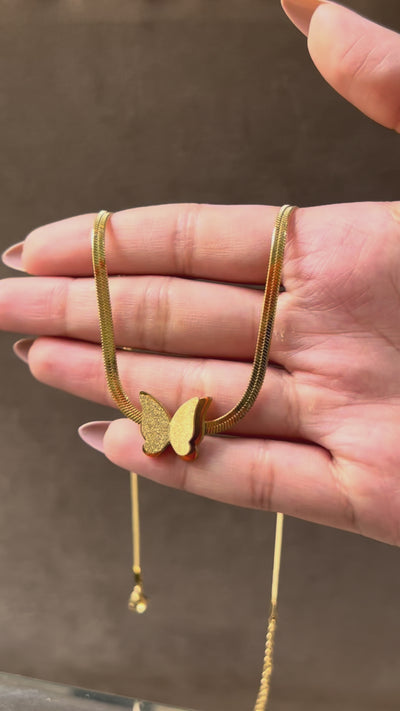 Bring sparkle to your neck Snake Bone Chain with Butterfly Stud Stainless Steel by samora, beautifully designed with a snakebone chain and radiant zircon stones. This piece is a showstopper for any celebration or elegant occasion, crafted with care in Pakistan.
