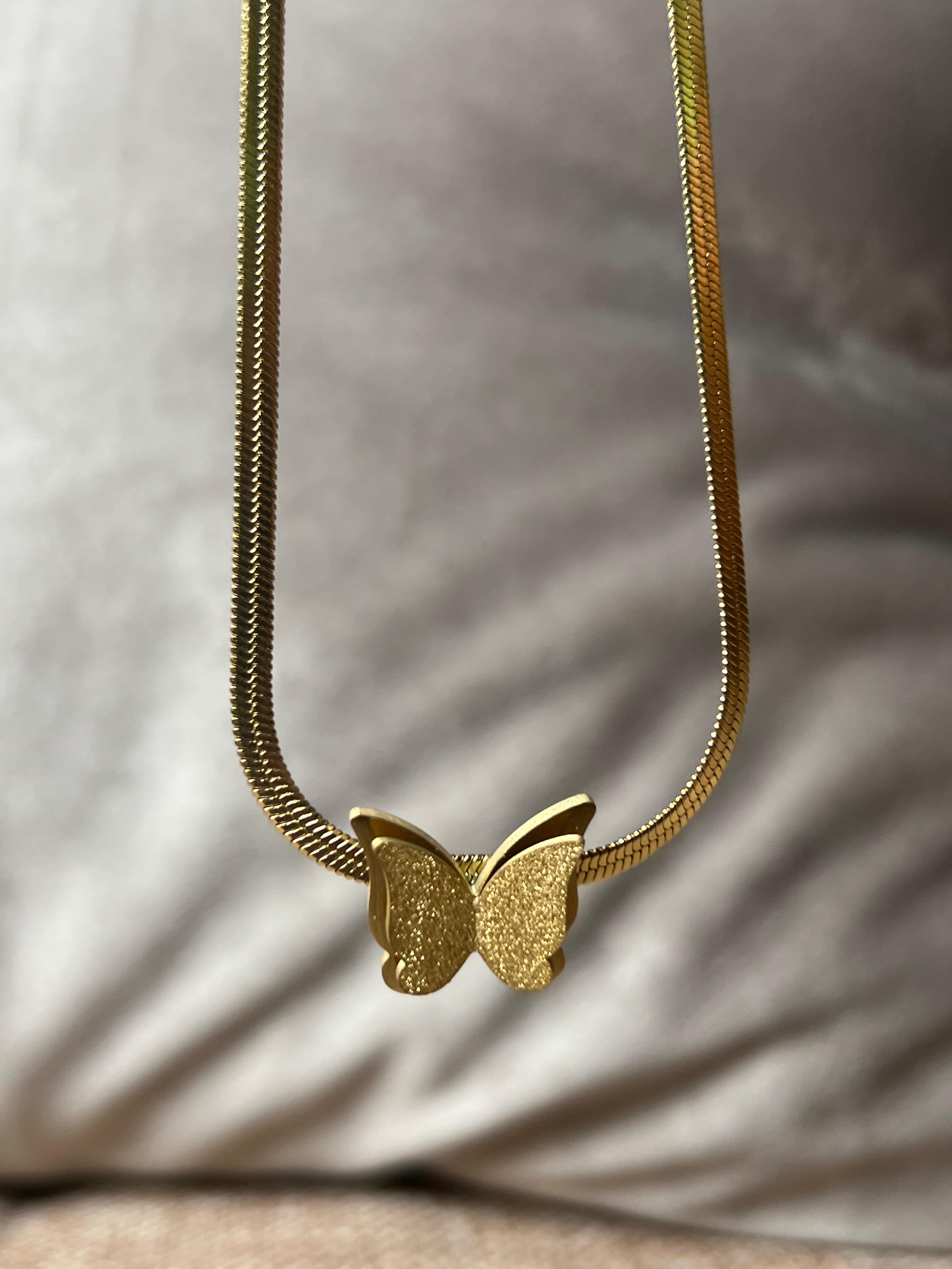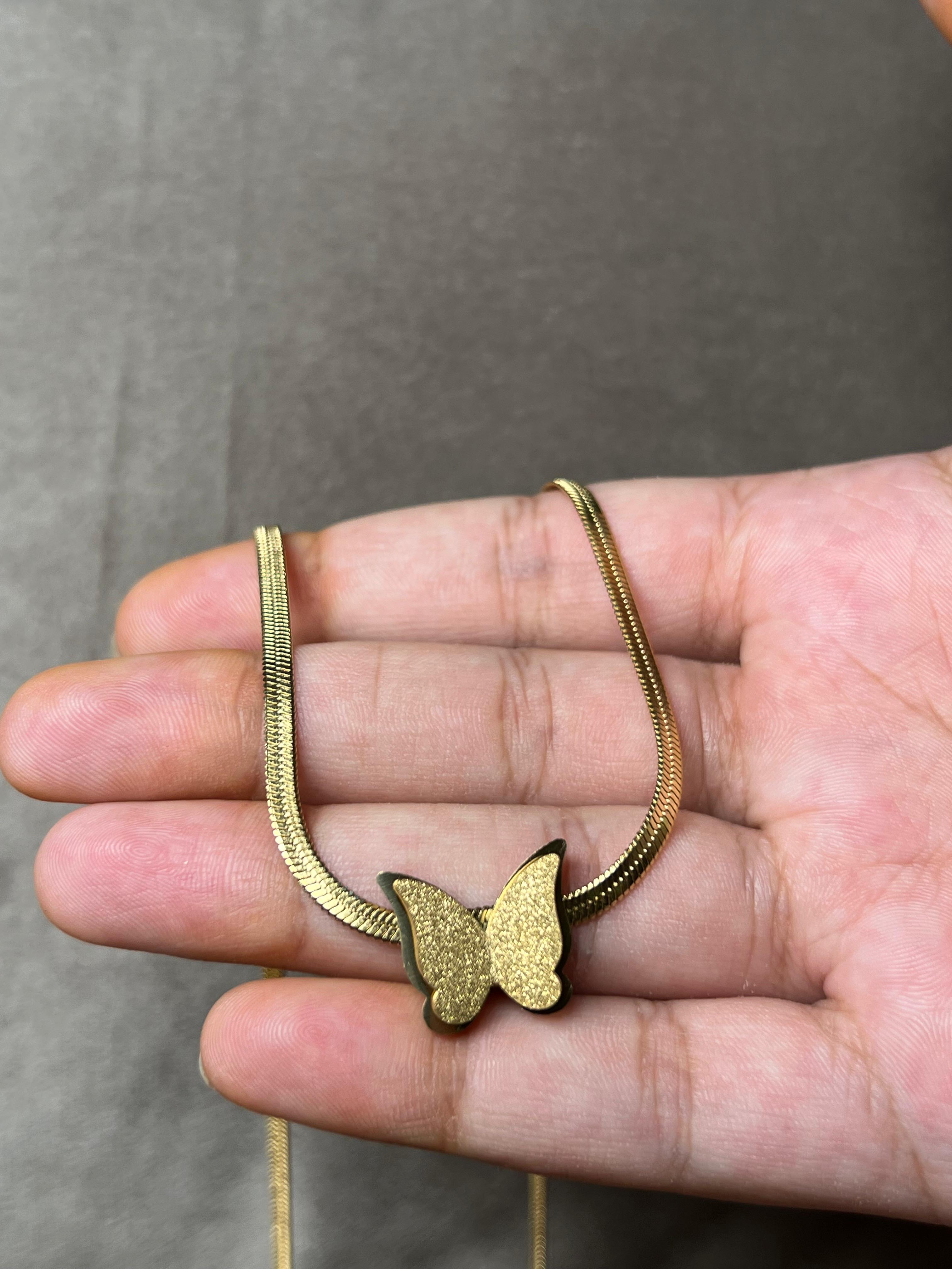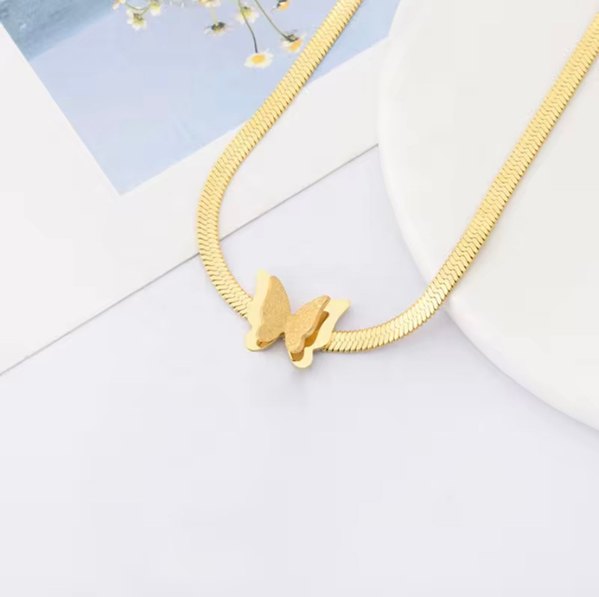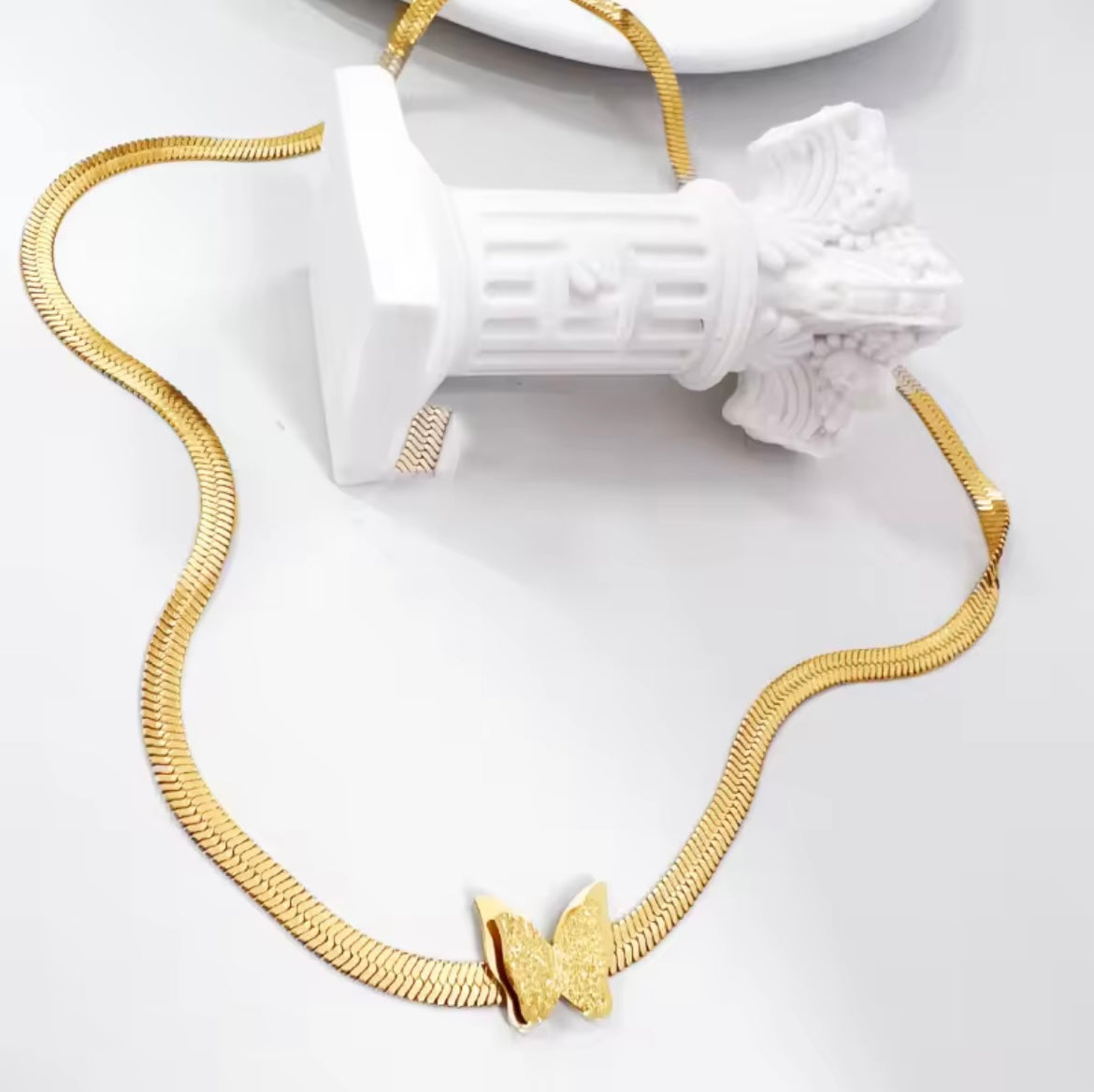 AM-1142- Snake Bone Chain with Butterfly Stud Stainless Steel