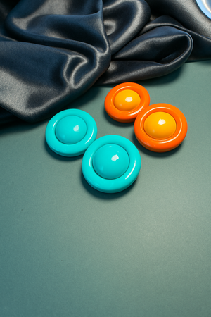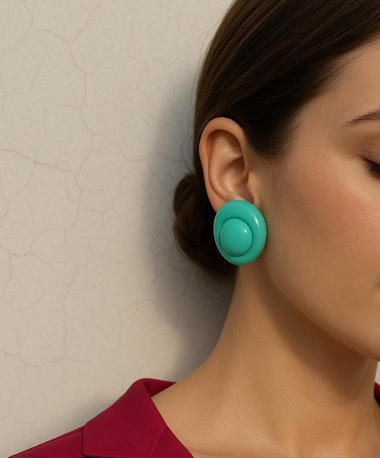 Add a pop of color to your outfit with Bold Dome Studs by Samora. Designed in vibrant turquoise and orange tones, these glossy dome-shaped earrings are ideal for fun, expressive styles. Lightweight and trendy, they bring a playful twist to any look.