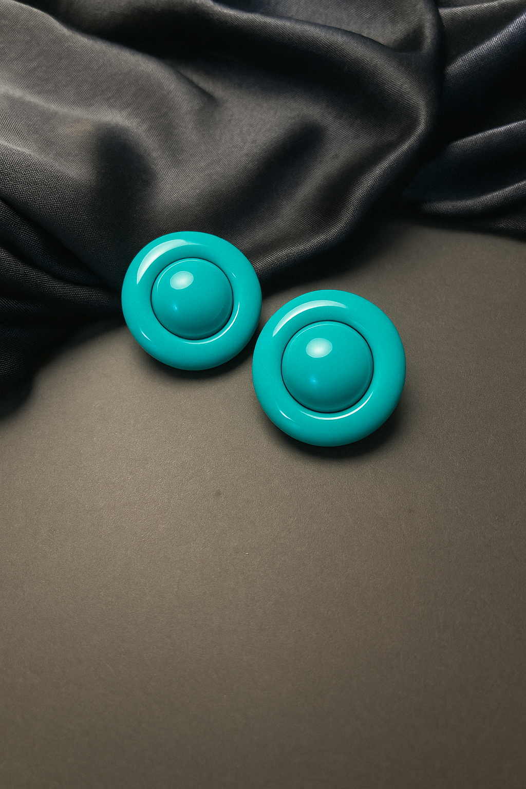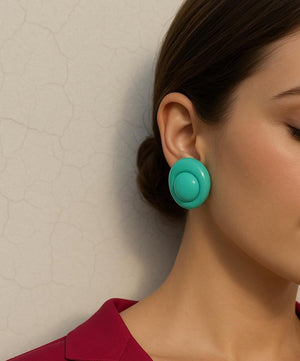 Add a pop of color to your outfit with Bold Dome Studs by Samora. Designed in vibrant turquoise and orange tones, these glossy dome-shaped earrings are ideal for fun, expressive styles....