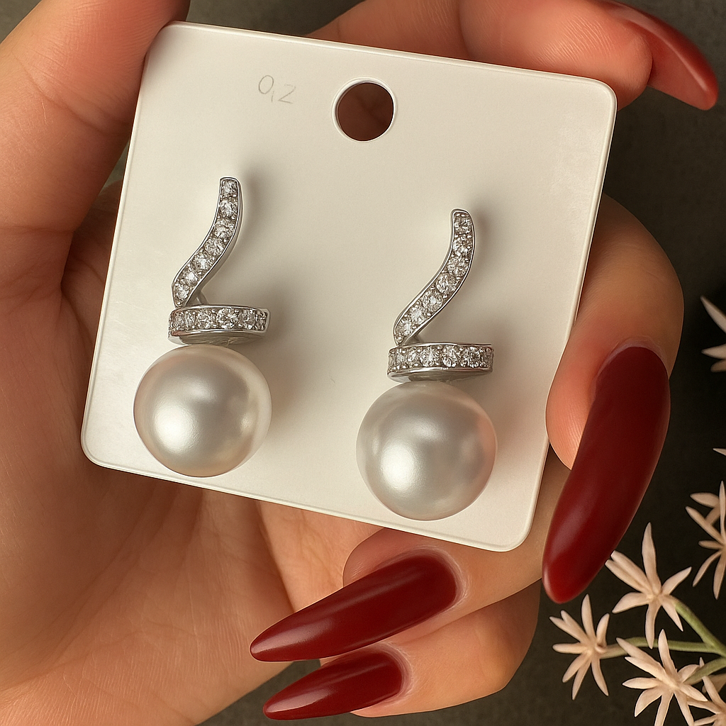 Elevate your style with our Elegant Pearl Curve Tops. This fashion jewelry piece is both timeless and affordable, crafted with precision by Samora Featuring a smooth pearl drop embraced by a rhinestone-encrusted curved hook, these artificial tops add a touch of sophistication to any outfit.